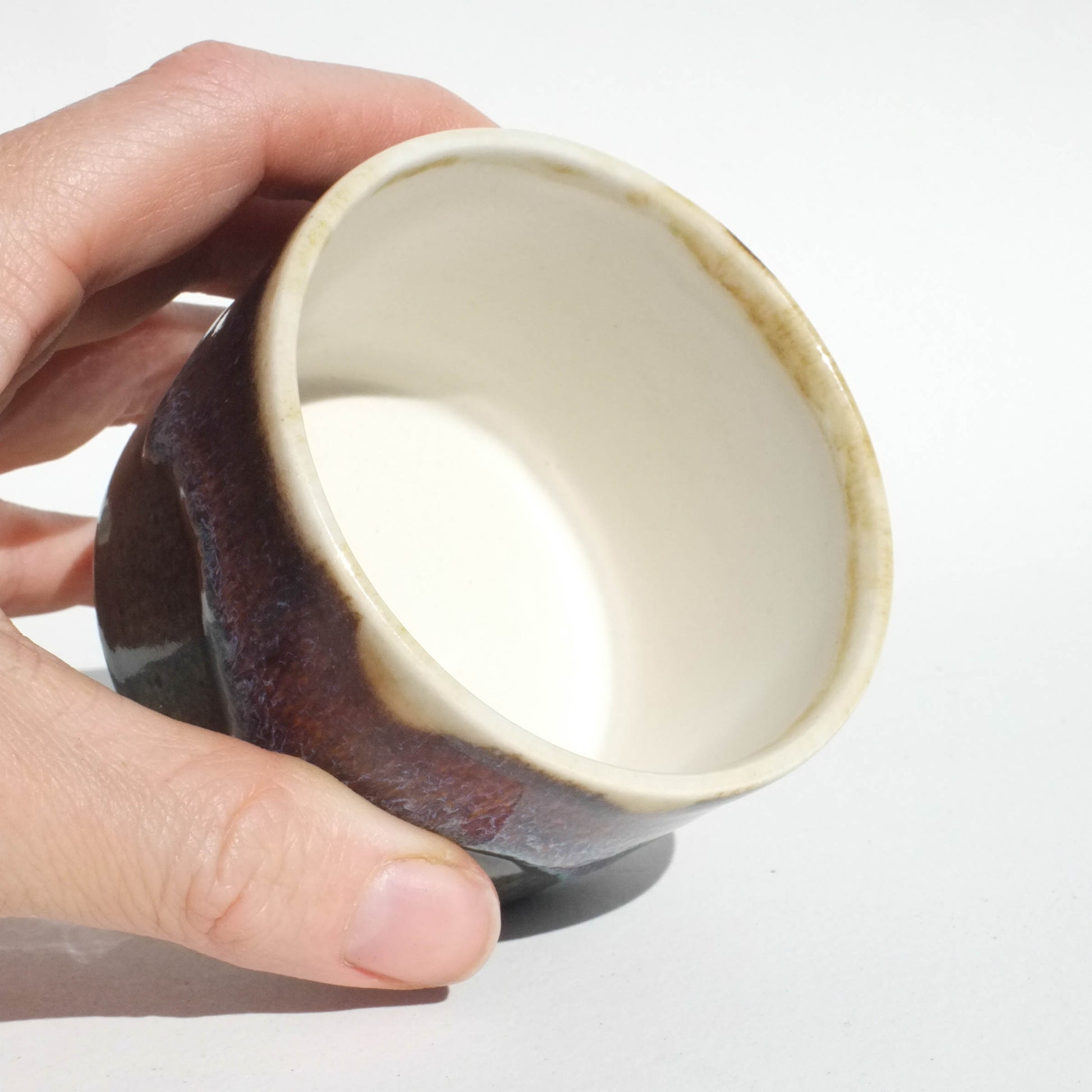 Had fun making a little dreamy landscape on this teacup! The inside is lined with white (it will crackle with use) so you can see the color of your tea! Holds 125ml comfortably, and 150ml to the very top.